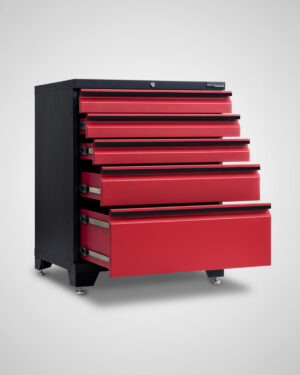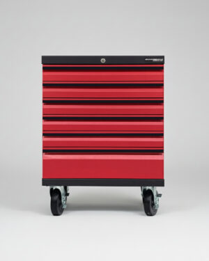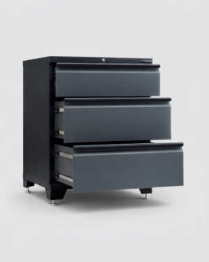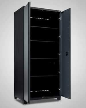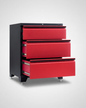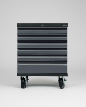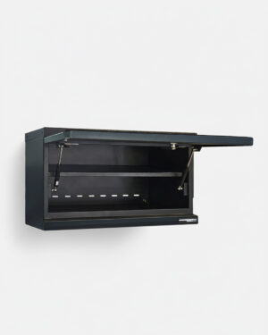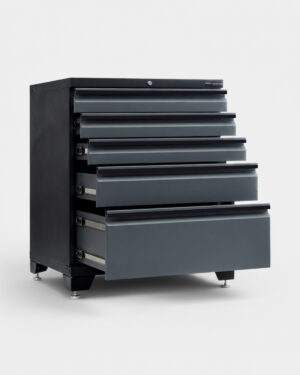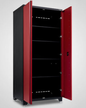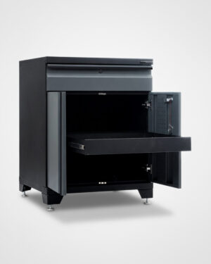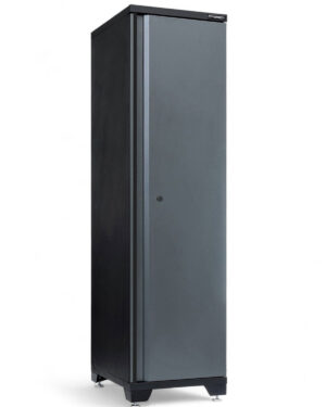 Garageinredning av förvaringsskåp som har ett djup på 61cm.