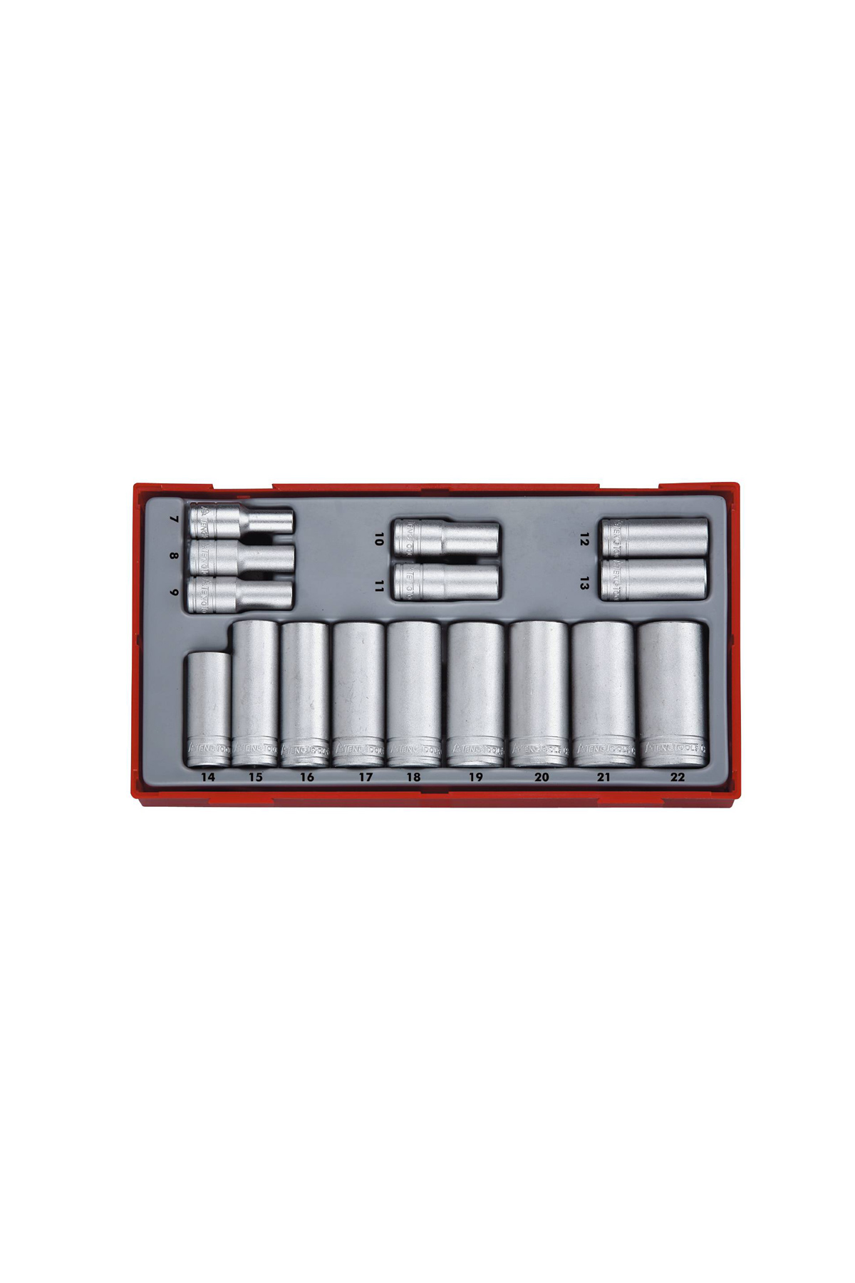 Hylsornas storlek 7, 8, 9, 10, 11, 12, 13, 14, 15, 16, 17, 18, 19, 20, 21, 22 mm