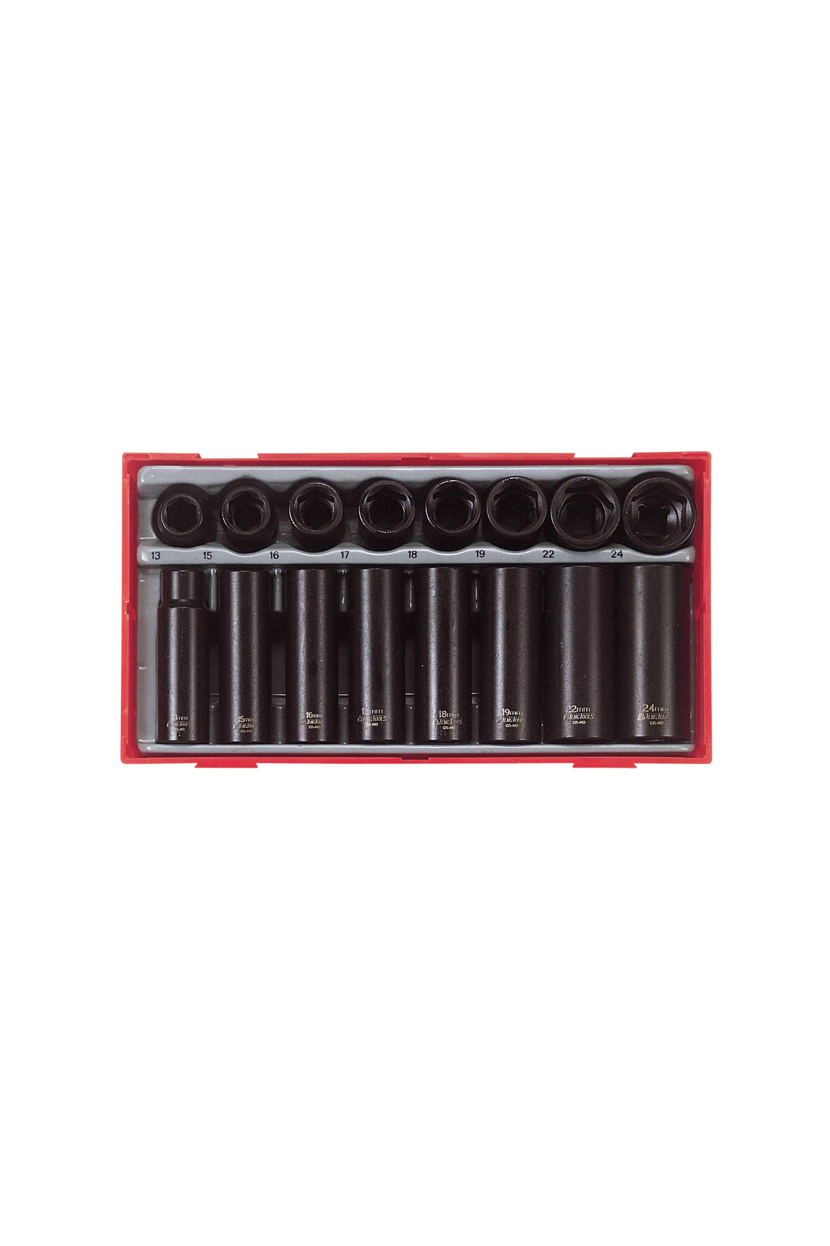 Krafthylsornas storlek (långa) 13, 15, 16, 17, 18, 19, 22, 24 mm