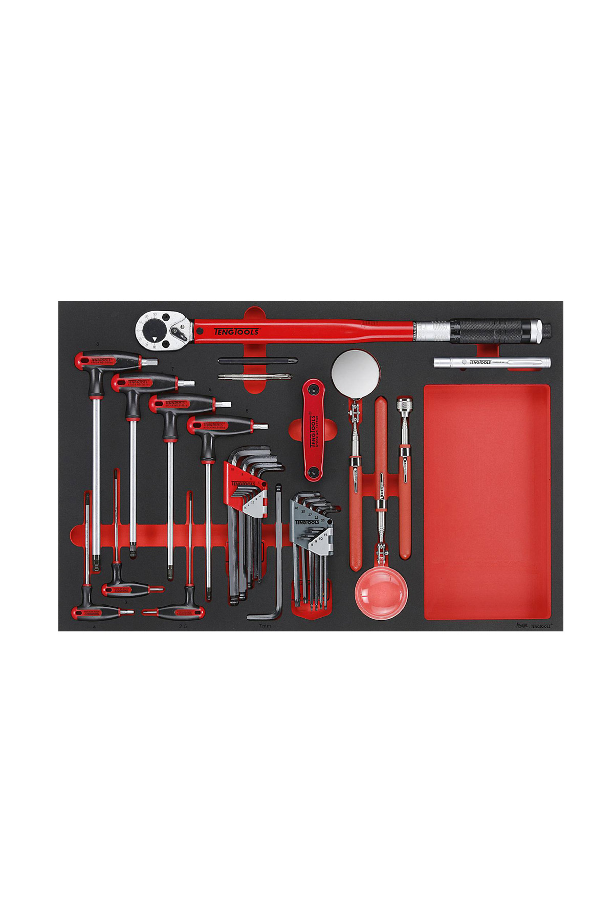 Fyller ut 57cm av lådans 63cm bredd i PRO serien vilket ger 3cm luft på höger resp vänster sida i lådan. Om man vill fylla ut detta utrymme rekommenderas Tengtools tom oskuren foam EVA01.