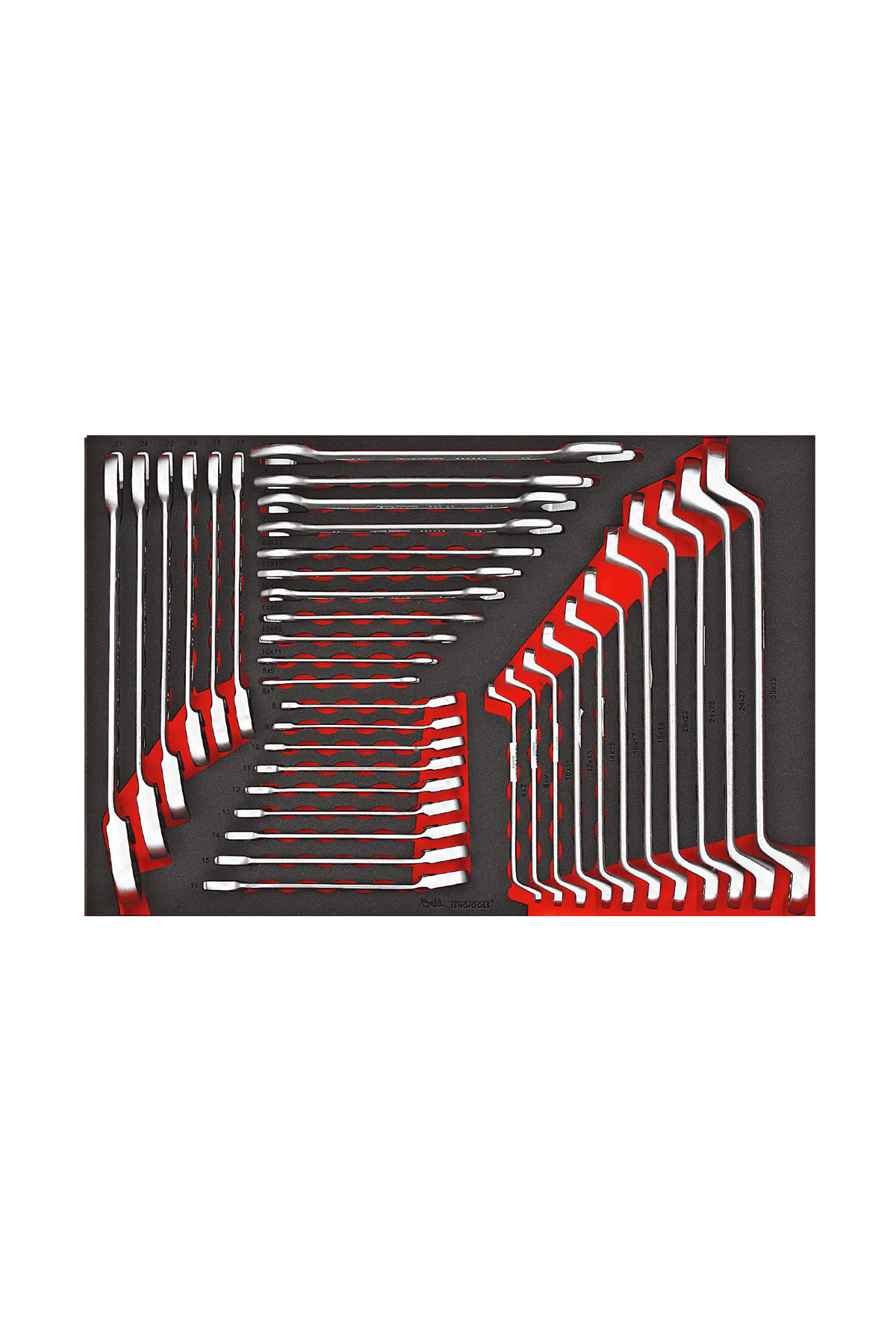 Fyller ut 57cm av lådans 63cm bredd i PRO serien vilket ger 3cm luft på höger resp vänster sida i lådan. Om man vill fylla ut detta utrymme rekommenderas Tengtools tom oskuren foam EVA01.