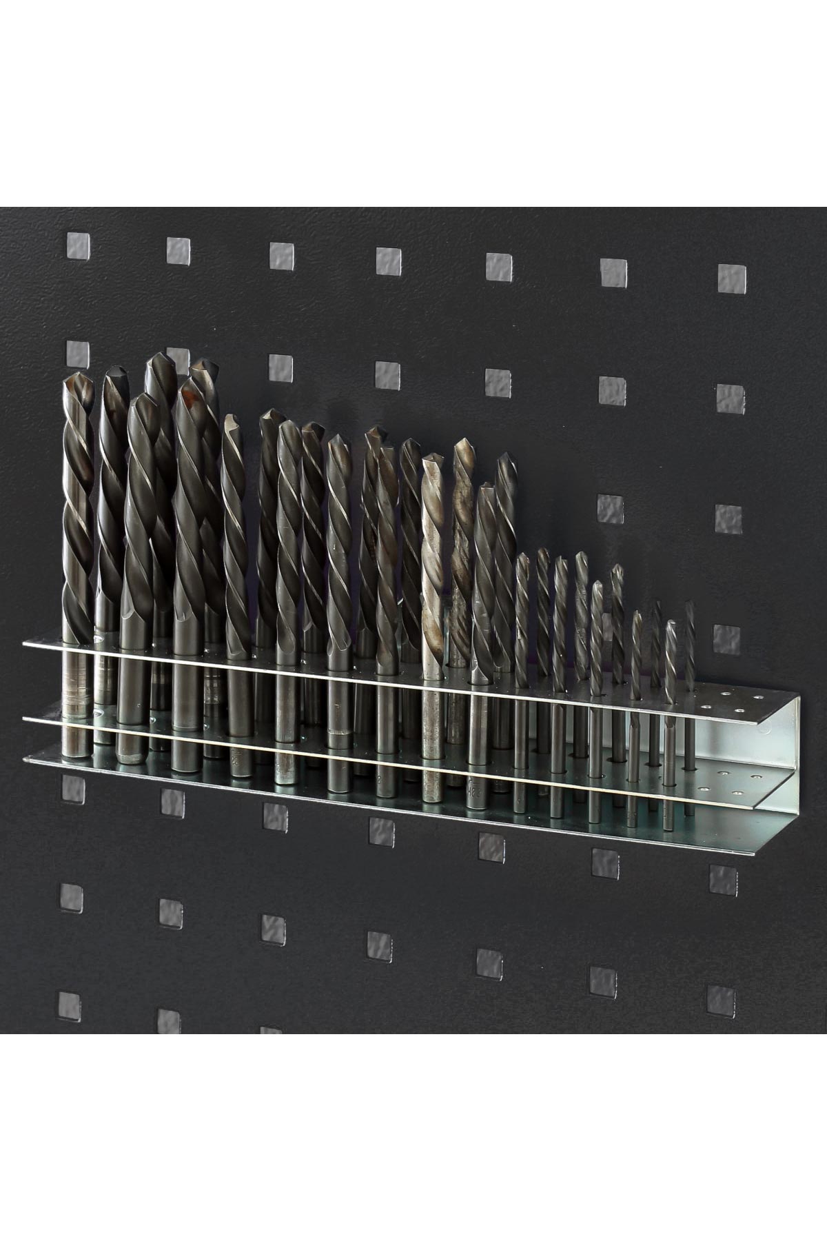 Hållaren passar våra verktygstavlor och andra tavlor med hålbilden 10mm fyrkantshål i cc38mm.