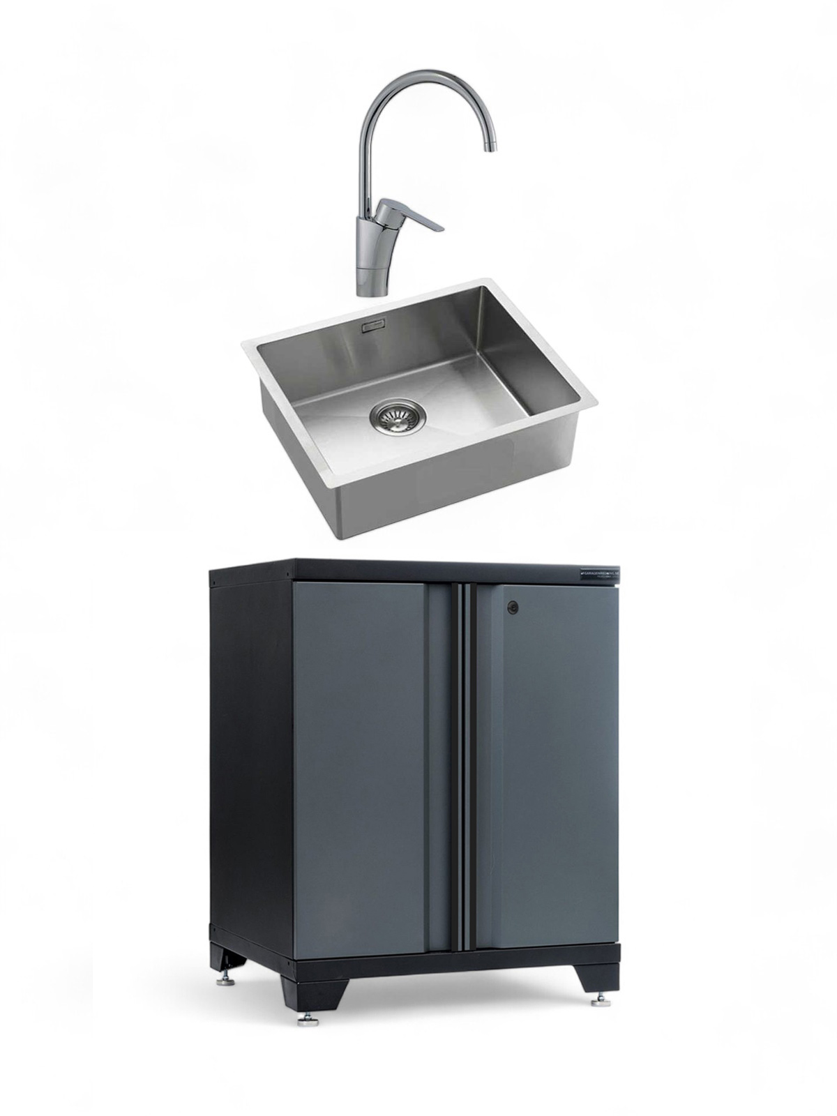 Eftersom skåpet har 61cm djup ger det mycket förvaringsutrymme samtidigt som ytan ovanpå kan användas som en riktig arbetsbänk. Se våra tillbehör i form av bänkskivor i trä eller rostfritt stål.