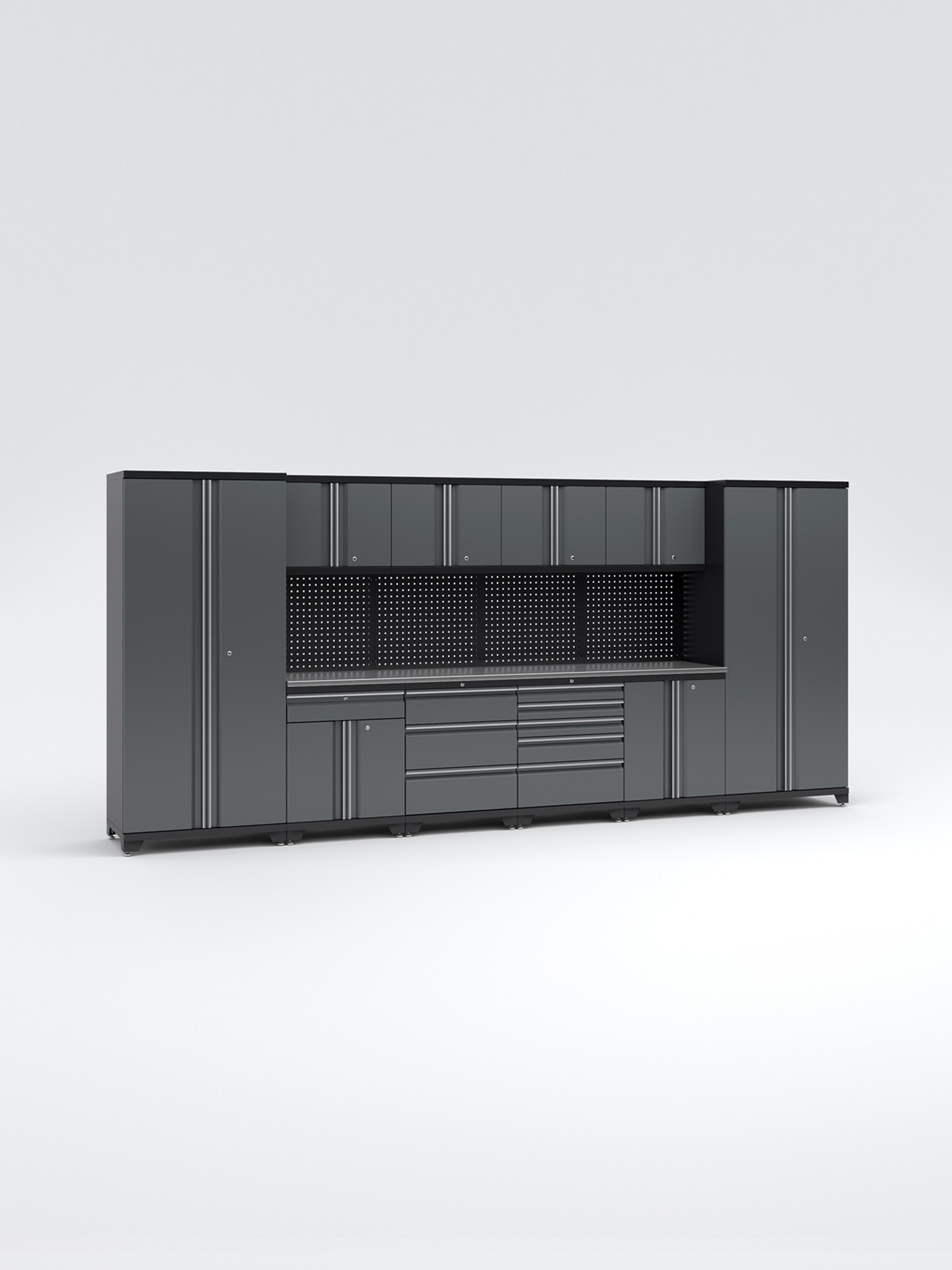 Ett förvaringspaket med bra variation av förvaringsutrymmen. Bredd 466cm. Bänkskiva ingår ej.
