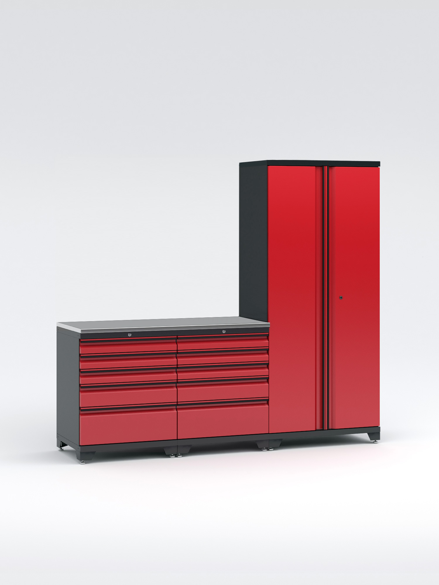 Garageinredning med 3 delar – set 2, Black edition – Röd, PRO