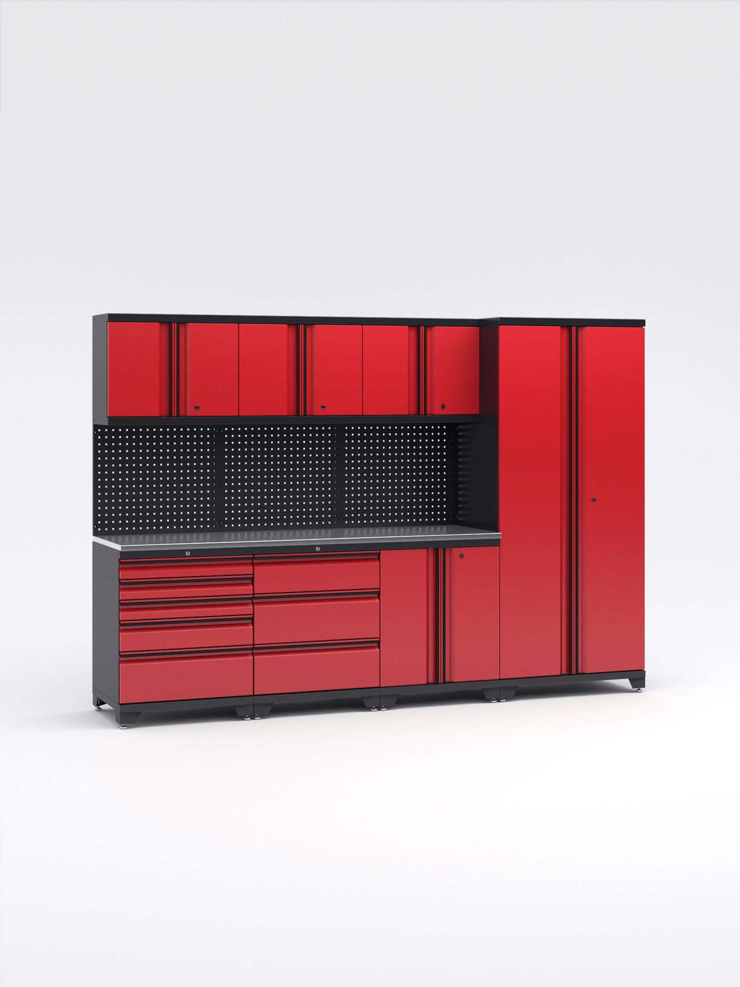 Garageinredning med 7 delar – set 1, Black edition – Röd, PRO
