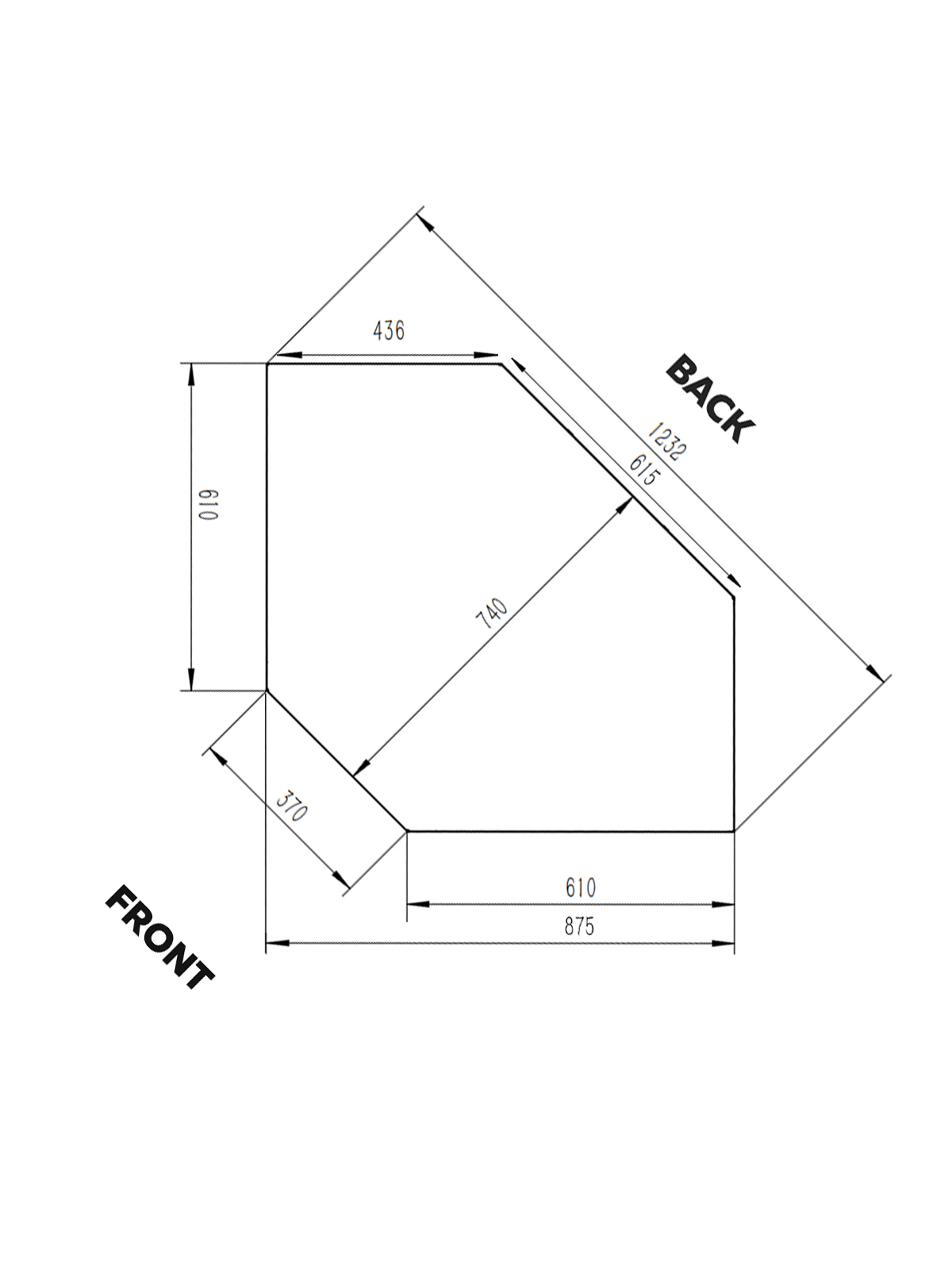 Skåpet bygger 875mm ut från vägghörn åt båda håll.