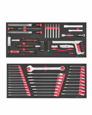 Fyller ut 57cm av lådans 63cm bredd i PRO serien vilket ger 3cm luft på höger resp vänster sida i lådan. Om man vill fylla ut detta utrymme rekommenderas Tengtools tom oskuren foam EVA01.