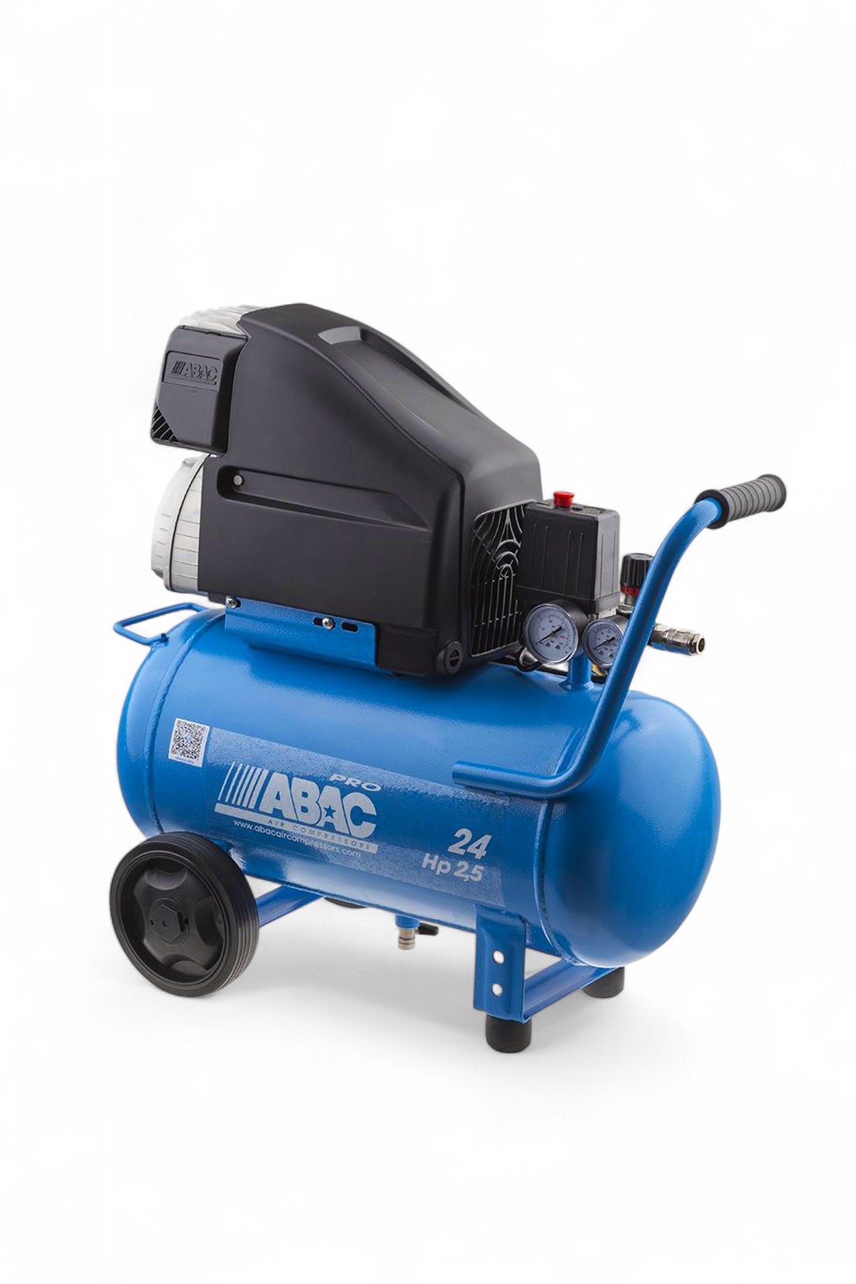 Utrustade med hjul och dubbla stödfötter, handtag, regulator med manometer, säkerhetsventil, komplett kabel med stickpropp, snabbkoppling och dräneringsventil.
