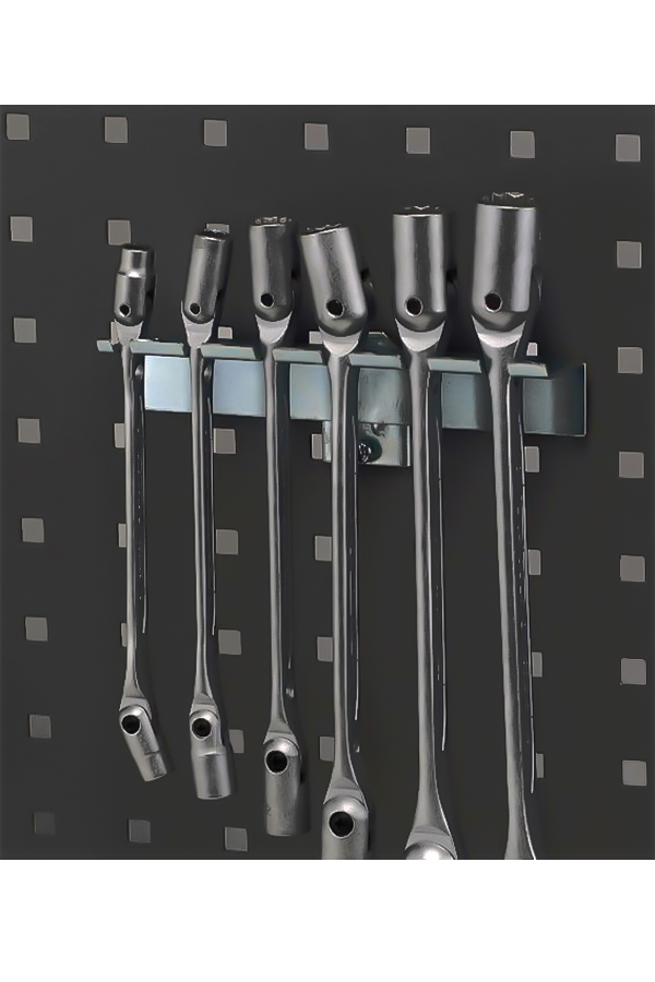 Hållaren passar våra verktygstavlor och andra tavlor med hålbilden 10mm fyrkantshål i cc38mm.