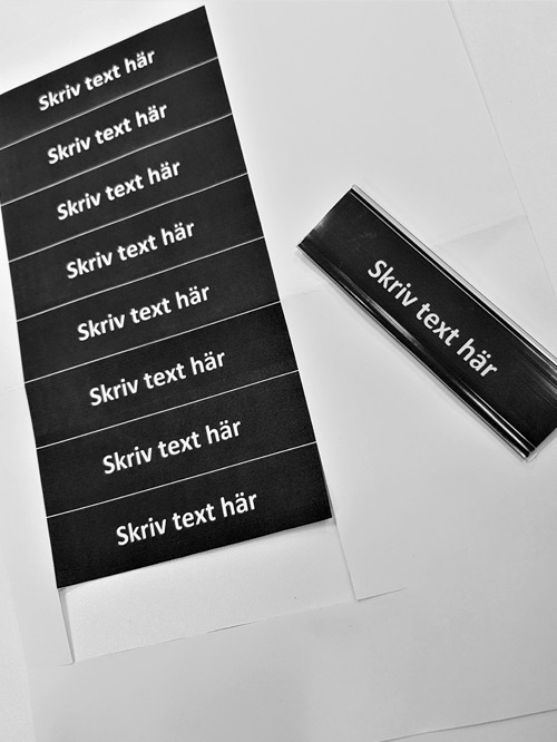 Produkten består av en magnetisk etiketthållare av plast, där man kan skjuta in en etikett eller rubrik som man har skrivit ut själv på ett vanligt papper.