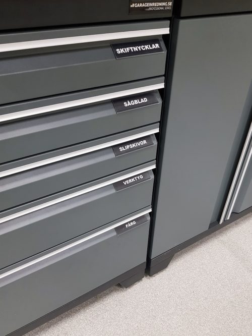 Har kört med bred 19 mm dymo-tejp i många år, för märkning av tidigare skåplösningar.