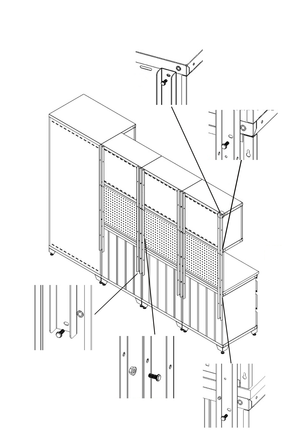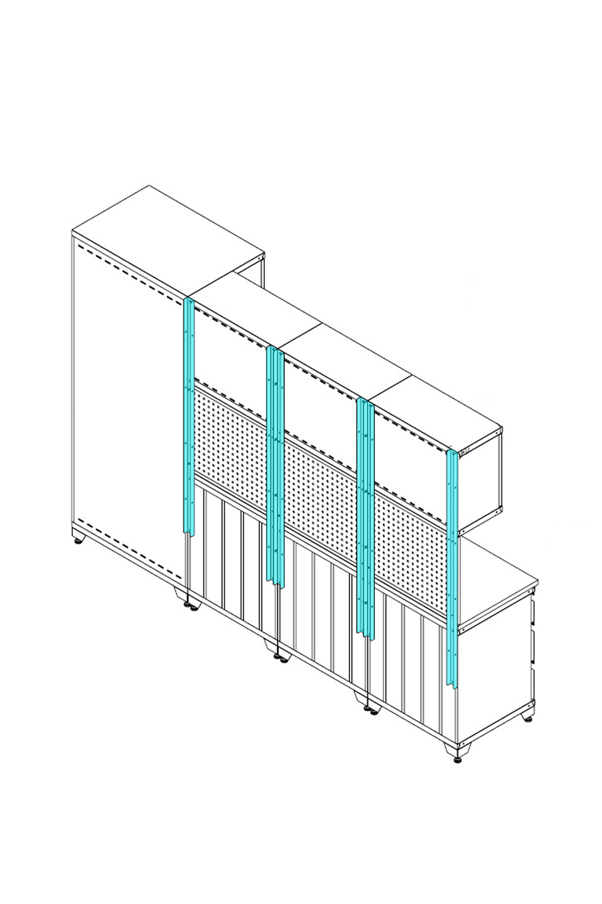 Gör att inredningen kan monteras i fullhöjd fristående utan vägg bakom sig.