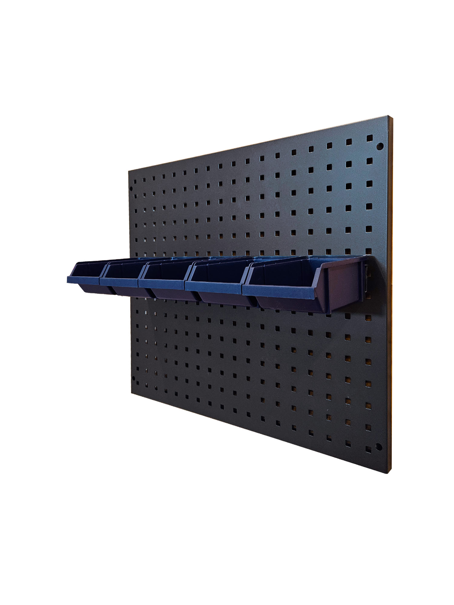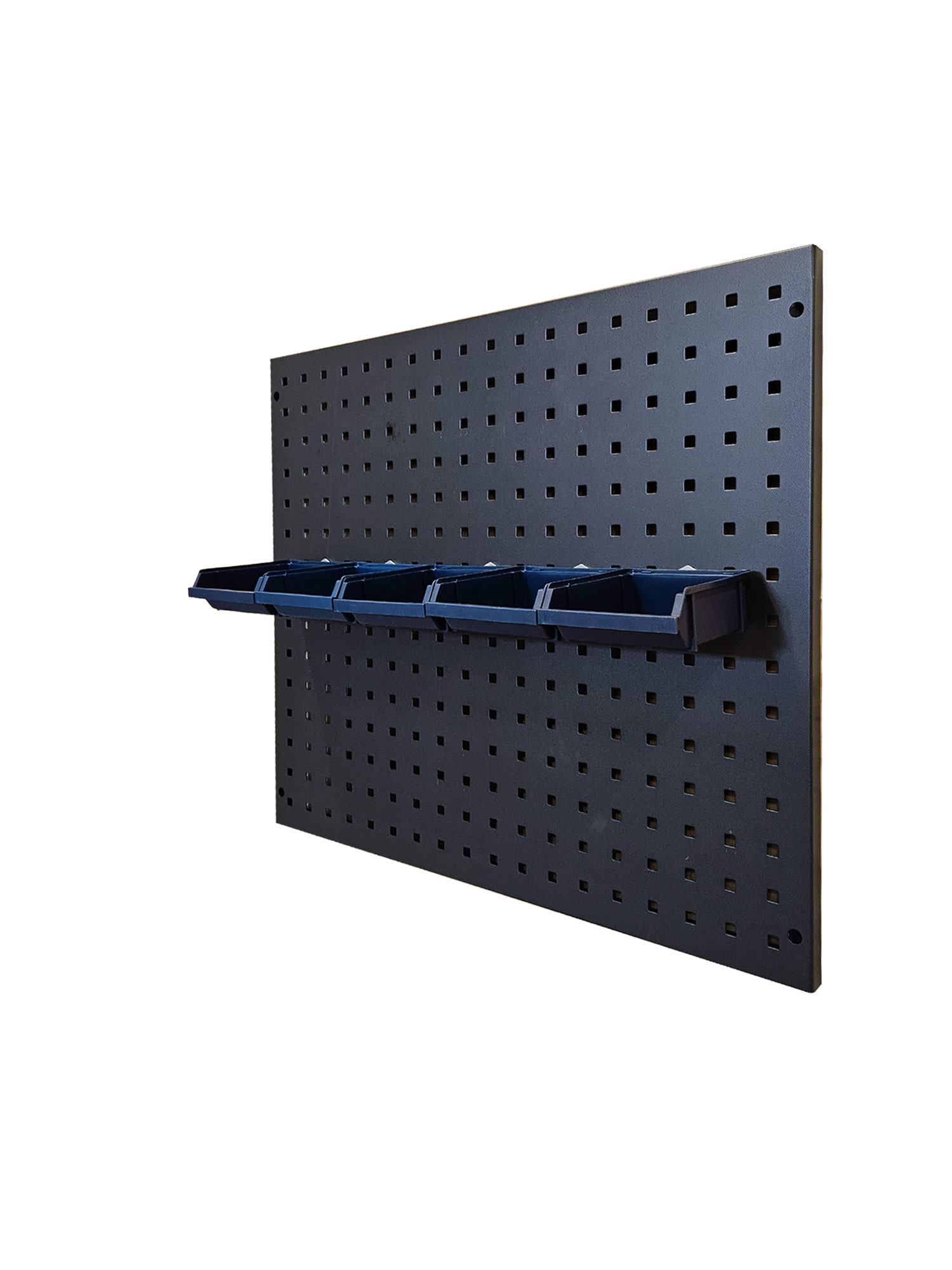 Innehåller lådor i 5st plastbackar komplett med hållare för att passa vår verktygstavla i Pro och Classic serien.