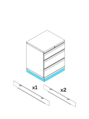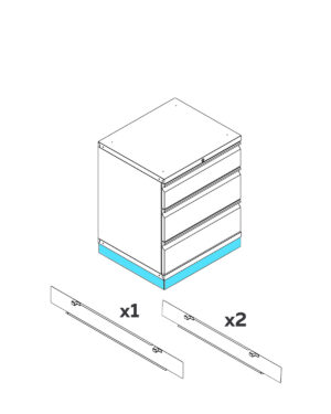 Sockel i 3 delar som stänger igen den hålighet under våra skåp i Pro serien.