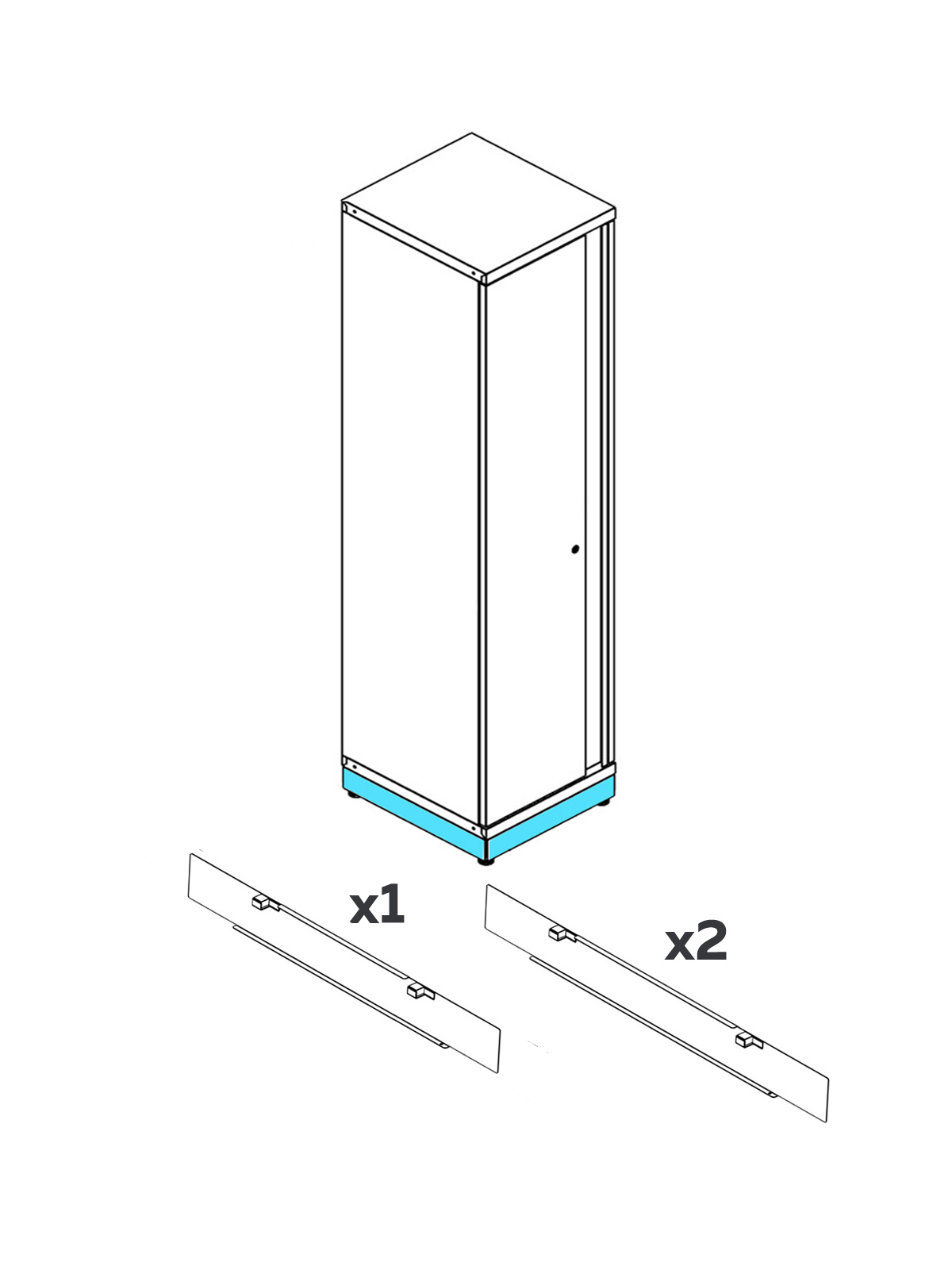 Sockel i 3 delar som stänger igen den hålighet under våra skåp i Pro serien.