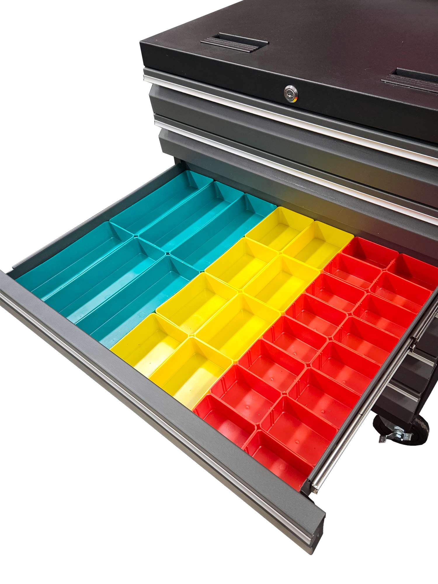 Säljes i set (14-56st) för att fylla 1st låda på vår verktygsvagn i PRO Serien.