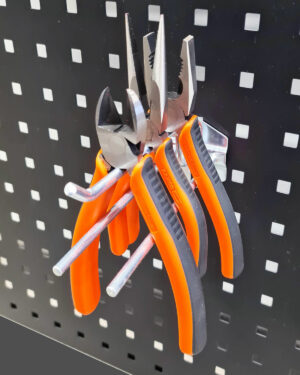 En hållare för tänger som passar våra verktygstavlor och andra tavlor med hålbilden 10mm fyrkantshål i cc38mm.