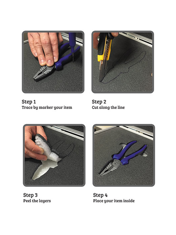 Skapa perfekt ordning till dina egna verktyg genom våra foam insatser måttanpassade till vår verktygsvagn i Pro Serien.