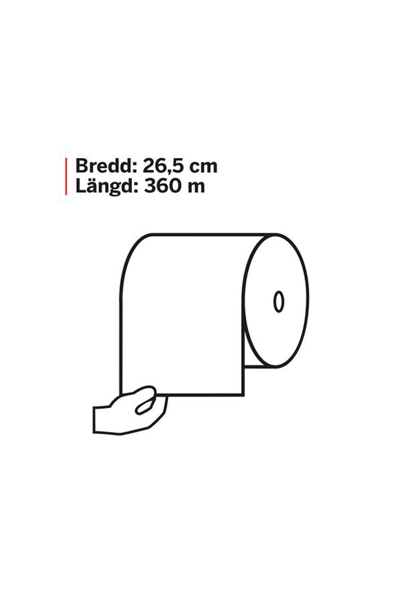 Då rullen är perforerad drar man enkelt av torkark i storlek 26x38cm.