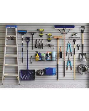Stilren väggpanel av PVC som är anpassad för redskapshållare. Gör det enkelt att skapa en skräddarsydd upphängningslösning med flera placeringsalternativ.