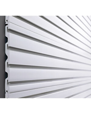 Stilren väggpanel av PVC som är anpassad för redskapshållare. Gör det enkelt att skapa en skräddarsydd upphängningslösning med flera placeringsalternativ.