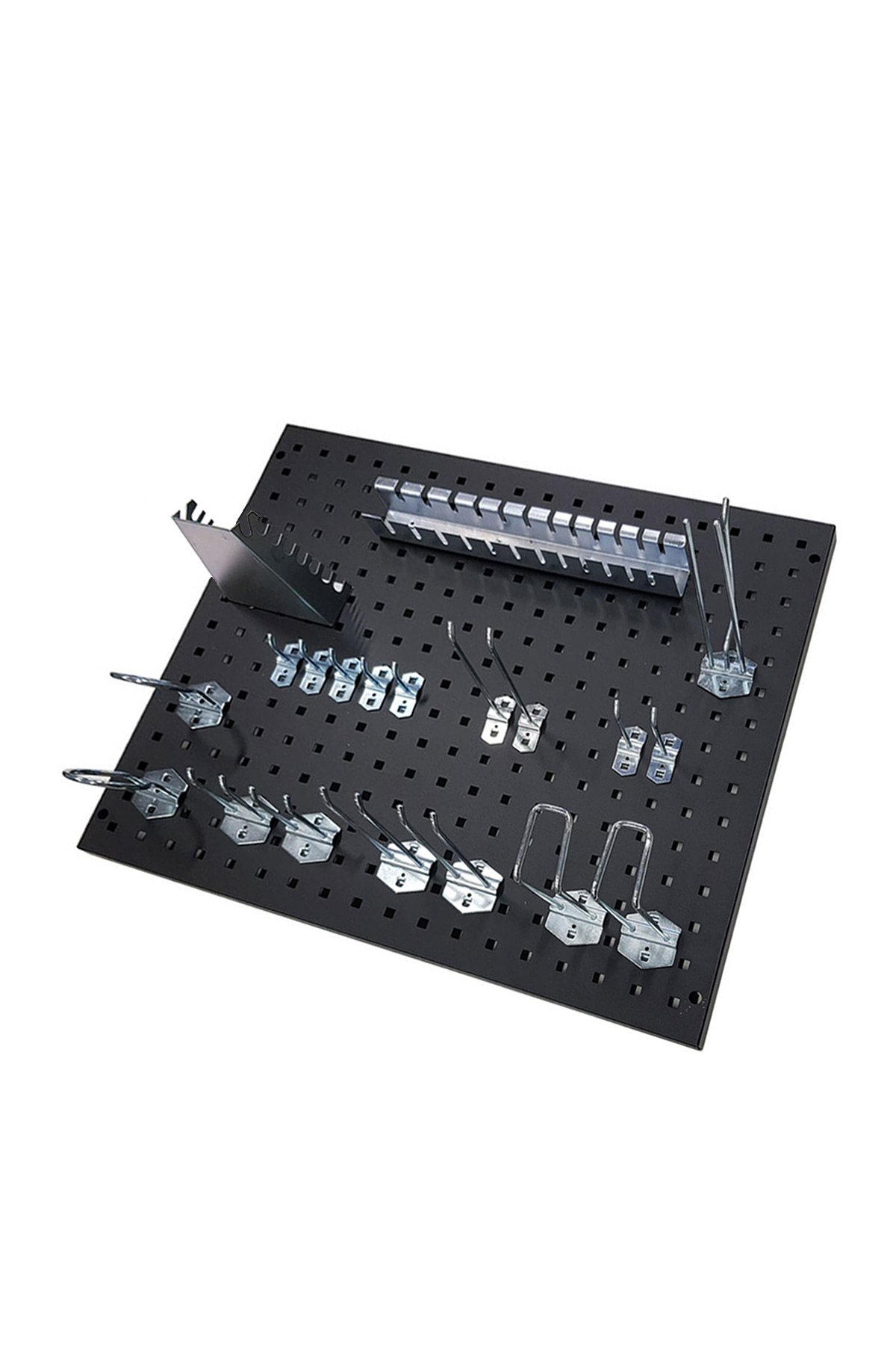 Krokarna och hållarna passar våra verktygstavlor och andra tavlor med hålbilden 10mm fyrkantshål i cc38mm.