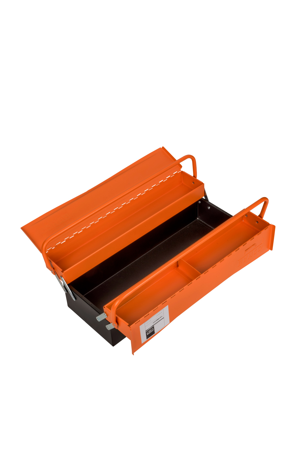 Bahco verktygslåda tillverkad i kraftigt stål, tålig pulverlackerad yta.