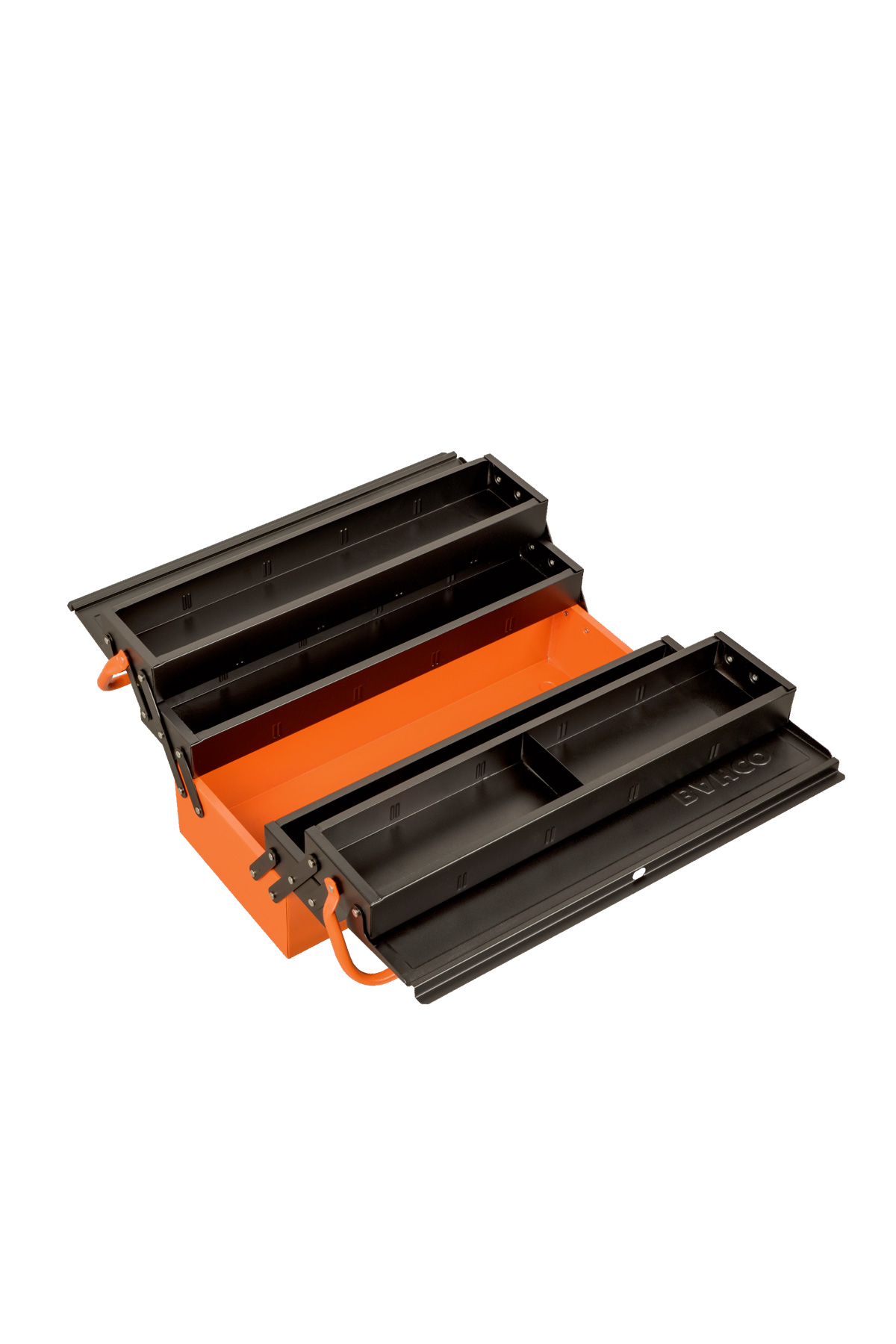 Bahco verktygslåda tillverkad i kraftigt stål, tålig pulverlackerad yta.