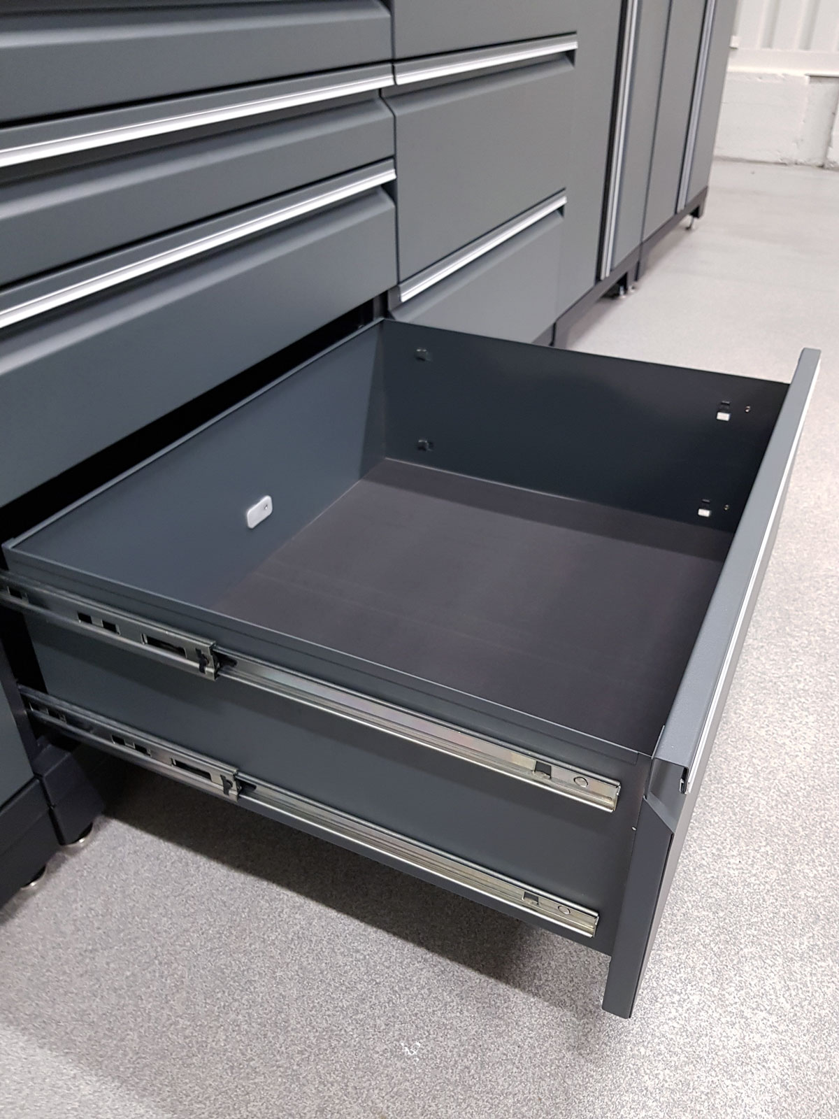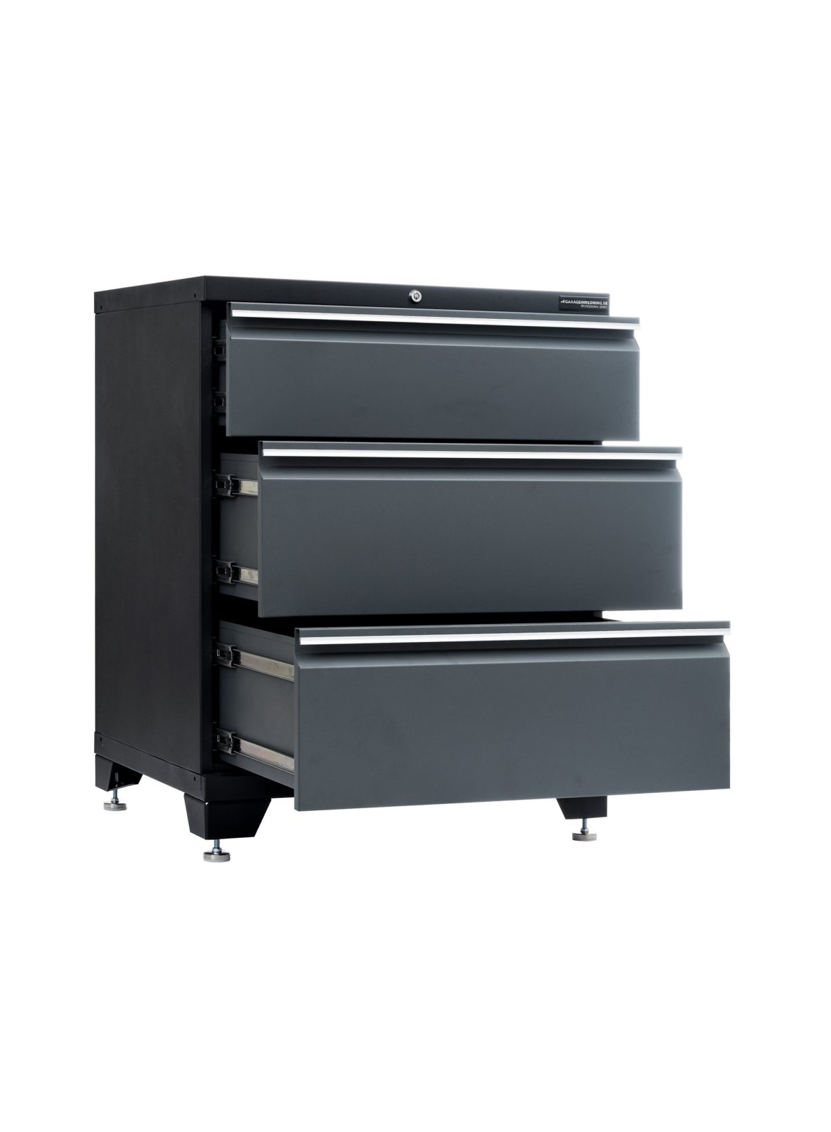 Detta skåp med 3 lådor levereras färdigmonterat och låsbara med ett centrallåssystem för extra säkerhet. Alla lådor har aluminiumlister på handtag, kullagerskenor med fullt utdragsdjup och svarta EVA antiglidmatta.