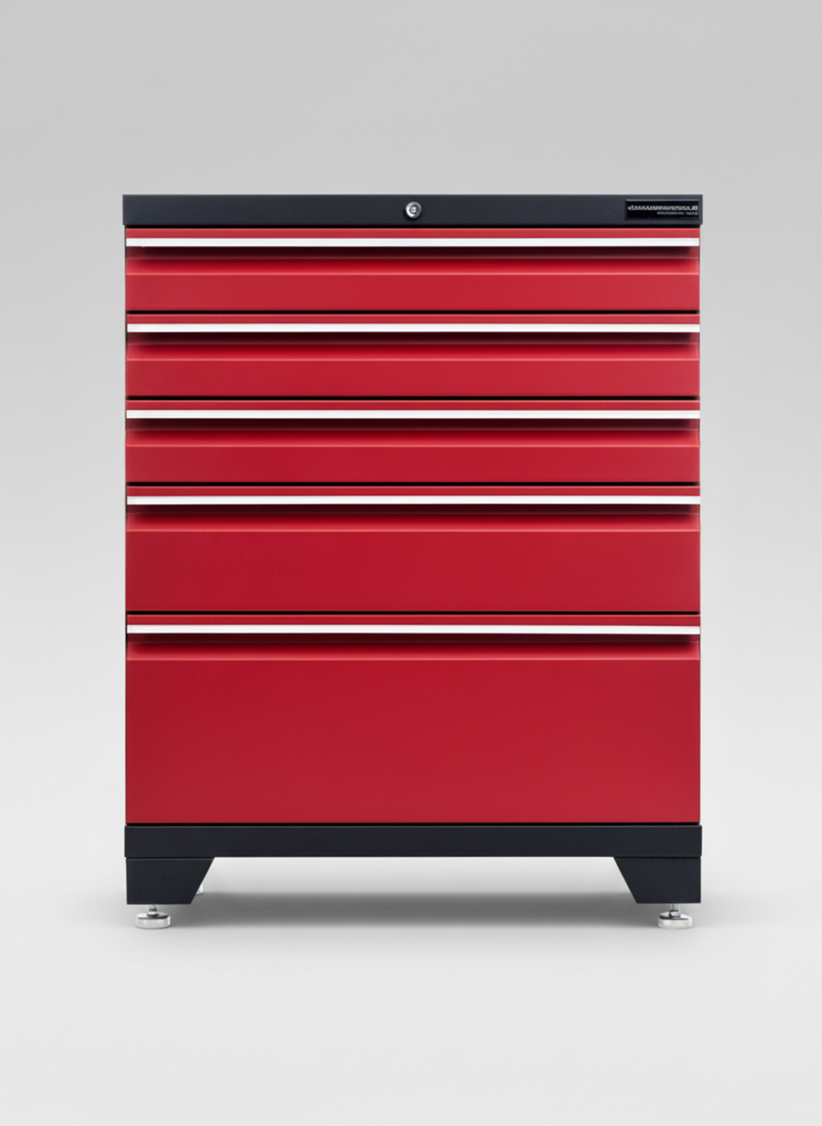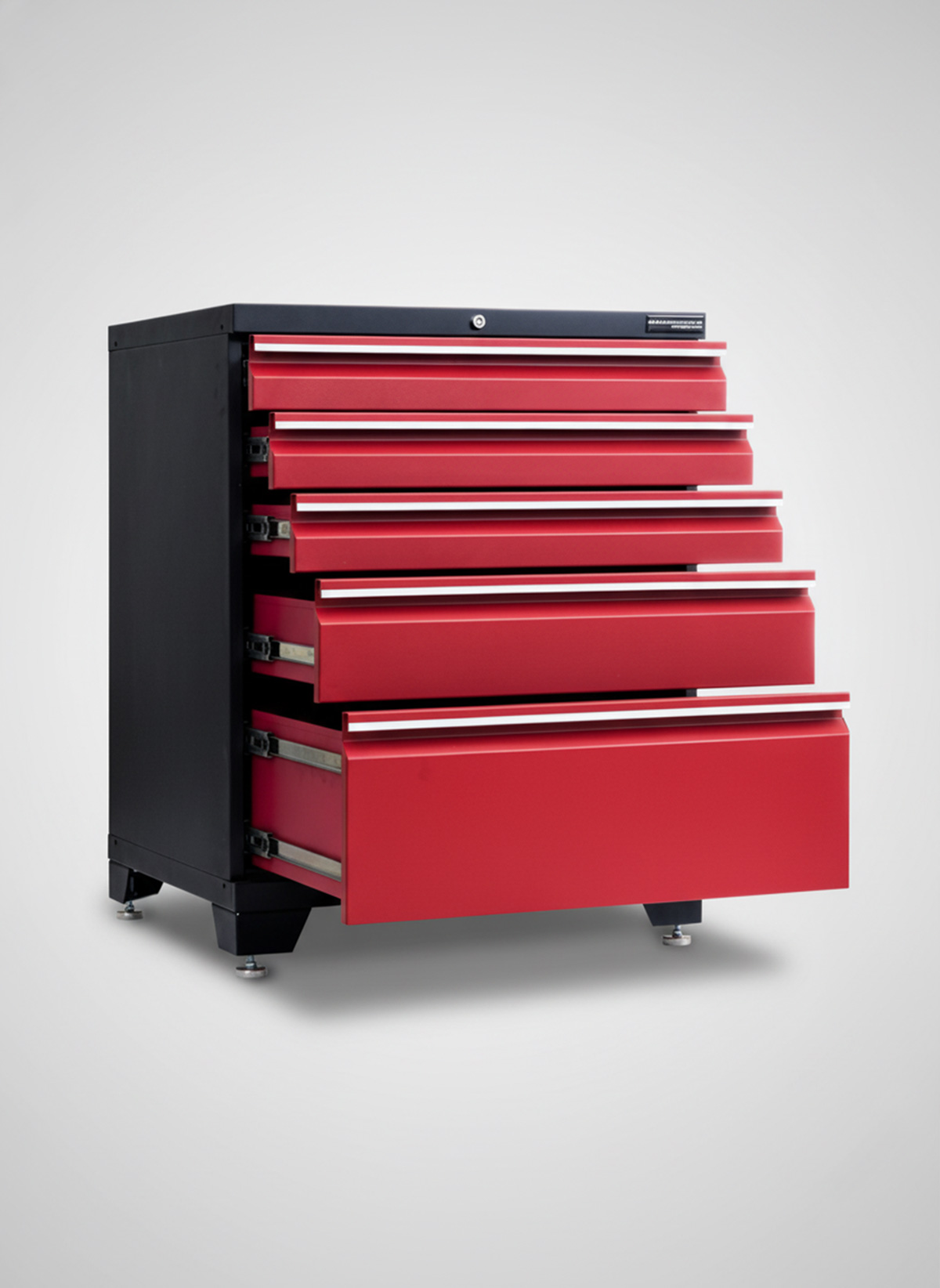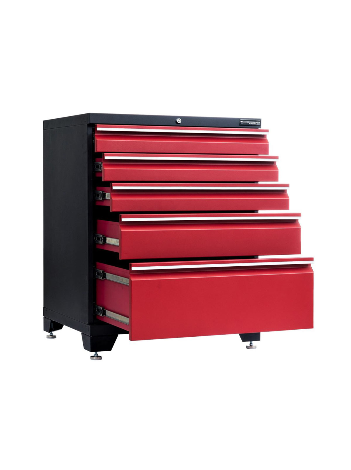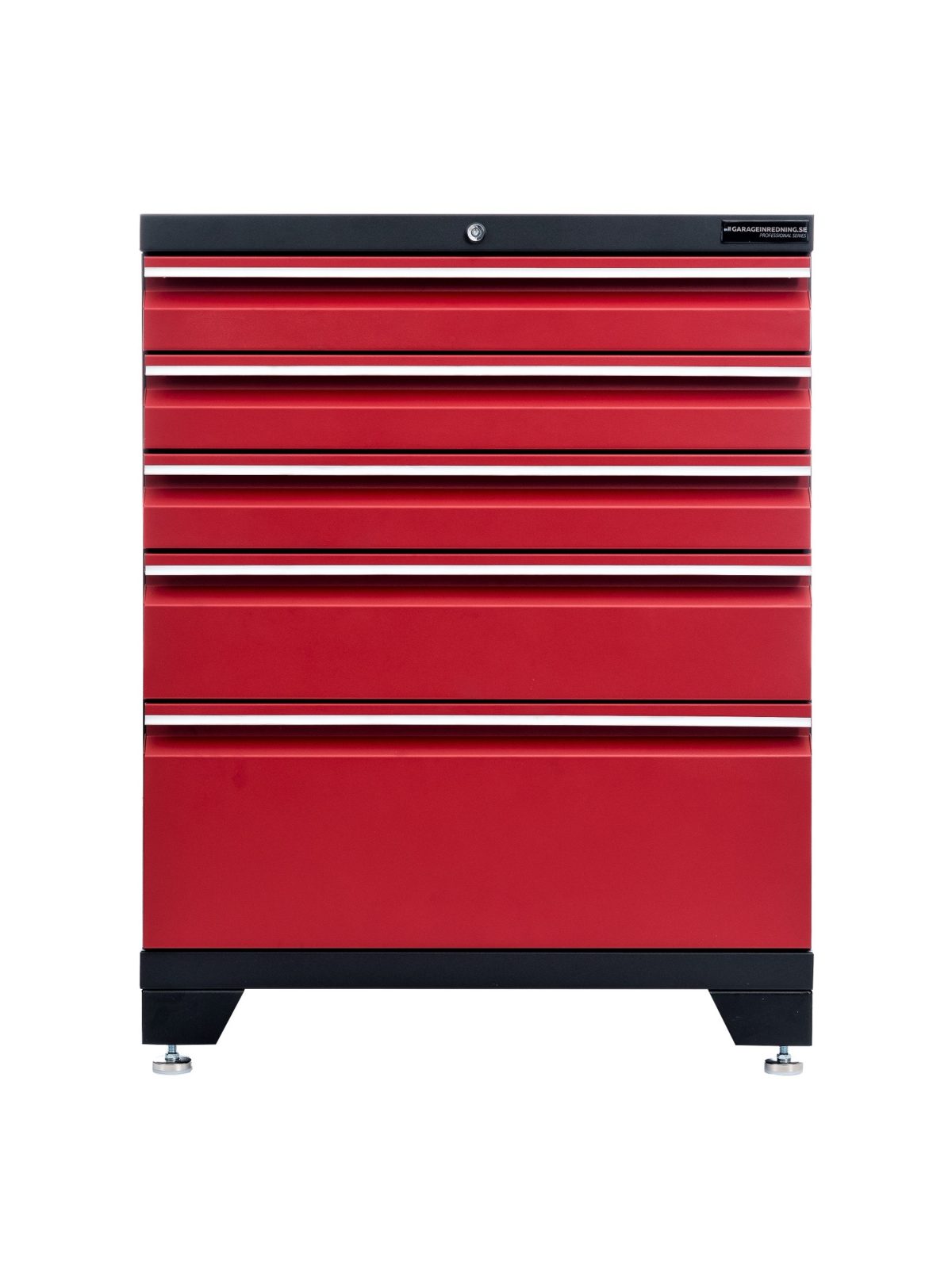 Detta skåp med 5 lådor levereras färdigmonterat och låsbara med ett centrallåssystem för extra säkerhet. Alla lådor har aluminiumlister på handtag, kullagerskenor med fullt utdragsdjup och svarta EVA antiglidmatta.