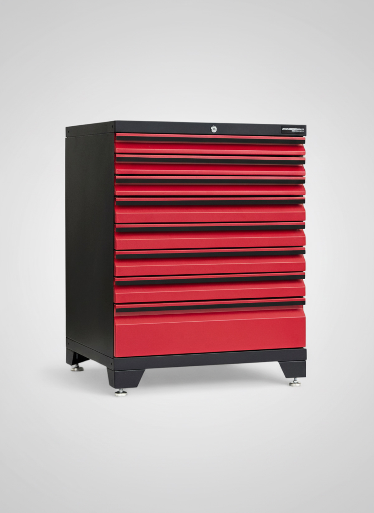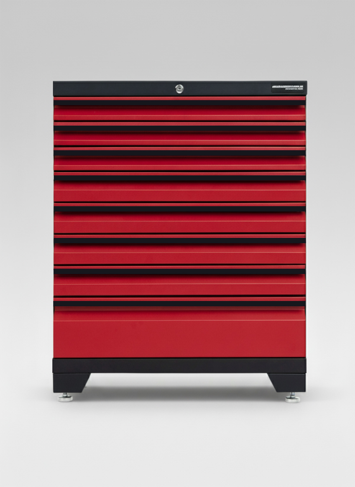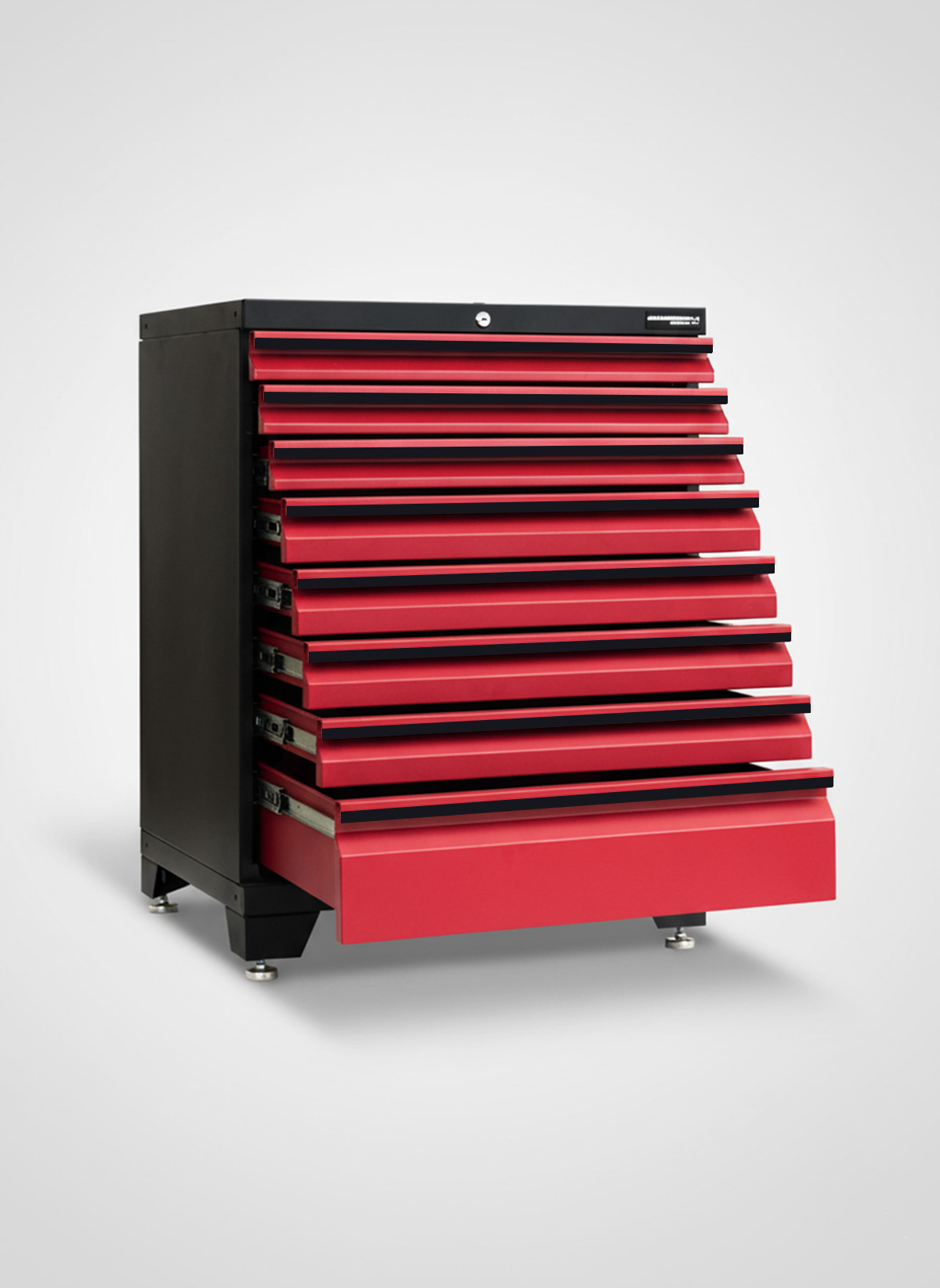 Detta skåp med 8 lådor levereras färdigmonterat och låsbara med ett centrallåssystem för extra säkerhet. Alla lådor har aluminiumlister på handtag, kullagerskenor med fullt utdragsdjup och svarta EVA antiglidmatta.