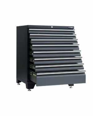 Detta skåp med 8 lådor levereras färdigmonterat och låsbara med ett centrallåssystem för extra säkerhet. Alla lådor har aluminiumlister på handtag, kullagerskenor med fullt utdragsdjup och svarta EVA antiglidmatta.