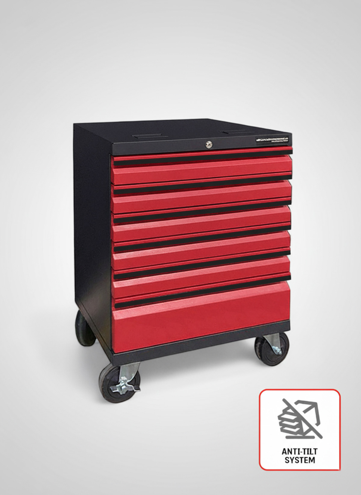 Högkvalitativ verktygsvagn i som är anpassad måttmässigt att ersätta ett golvskåp. Försedd med hjul som gör det enkelt dra ut vagnen till din arbetsplats och därefter styra in den under arbetsbänken igen. De sex lådorna ger gott om förvaringsutrymme för dina verktyg.