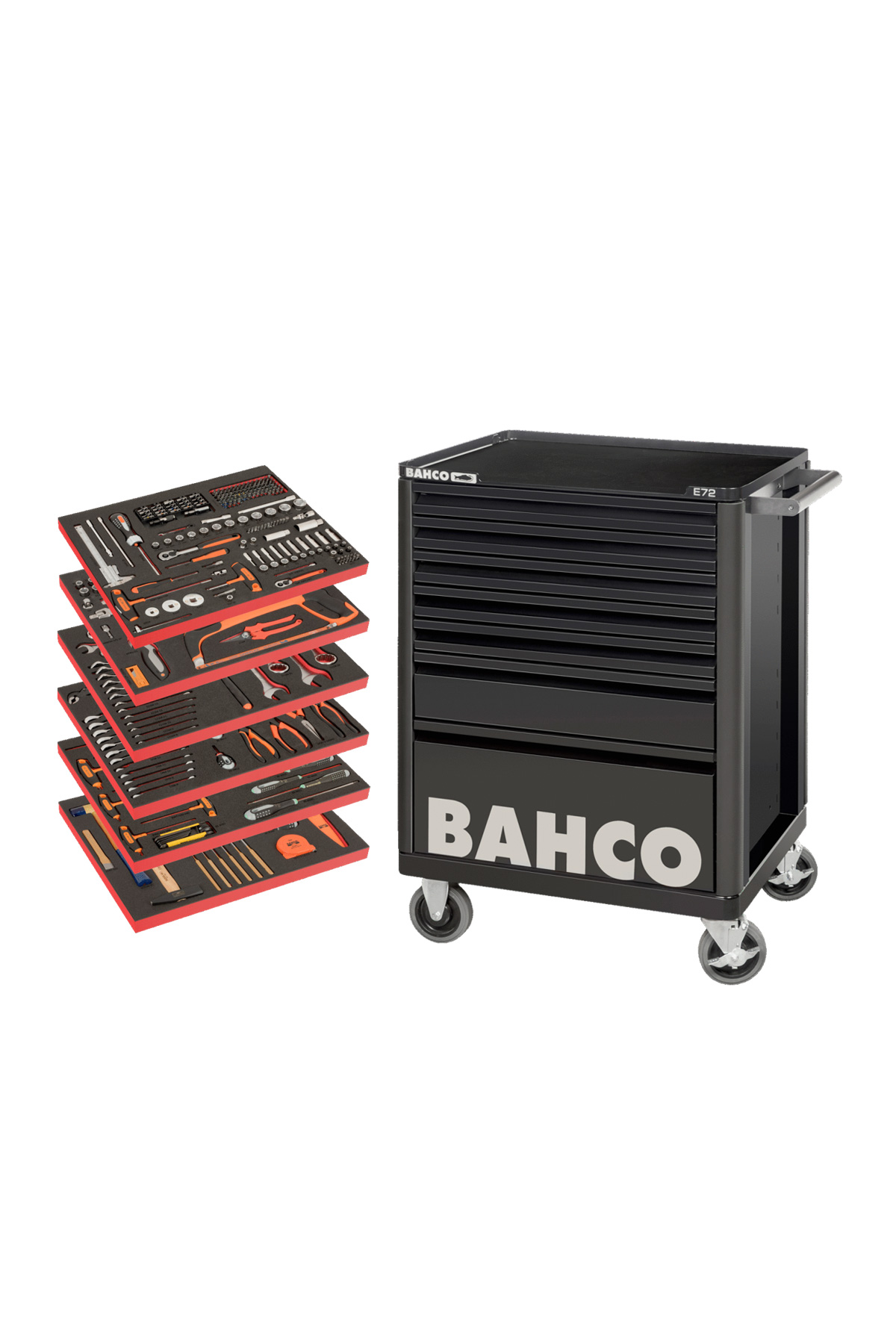- Verktygsvagn bestående av 7 lådor E72 samt skumplastinlägg med verktygssortiment